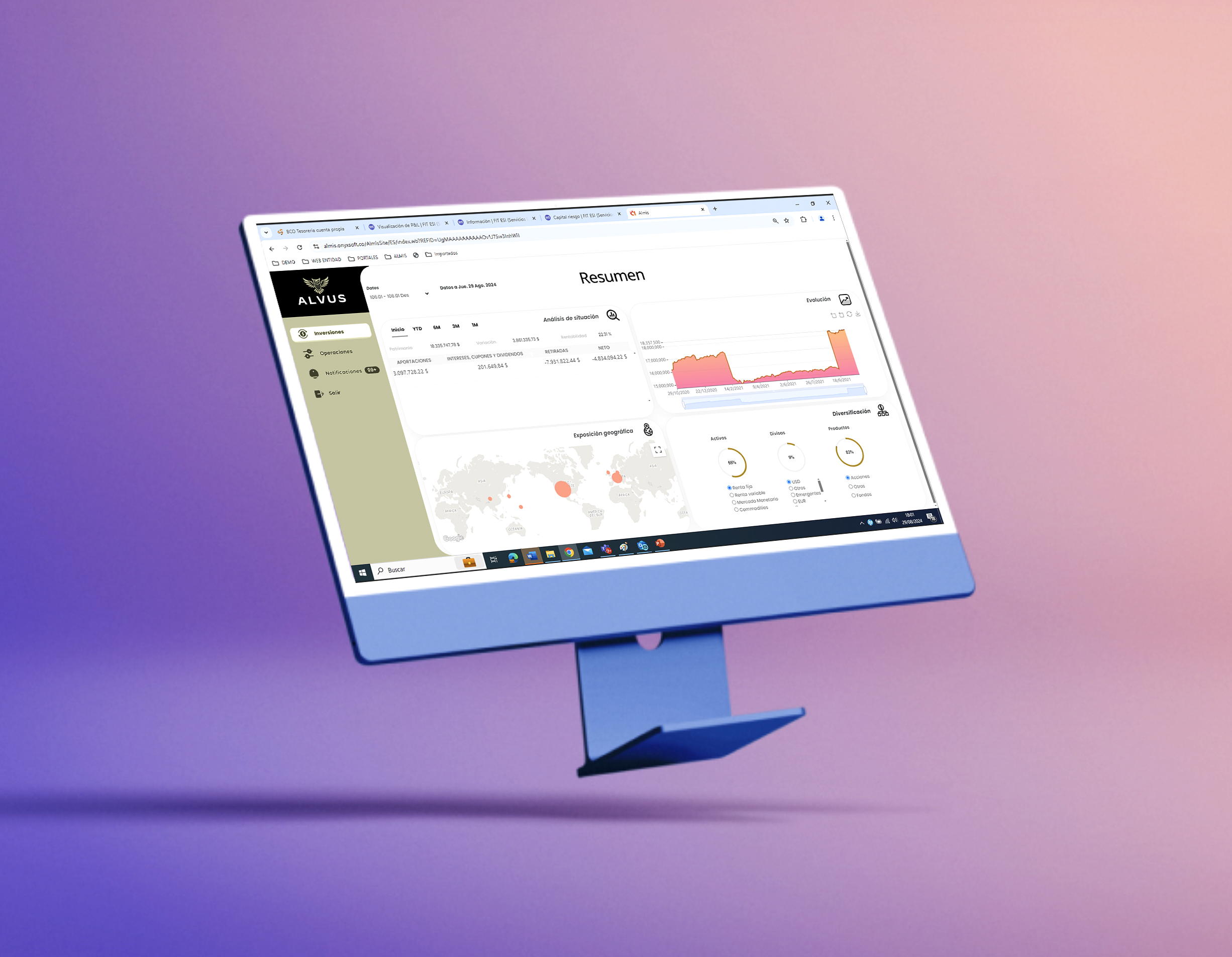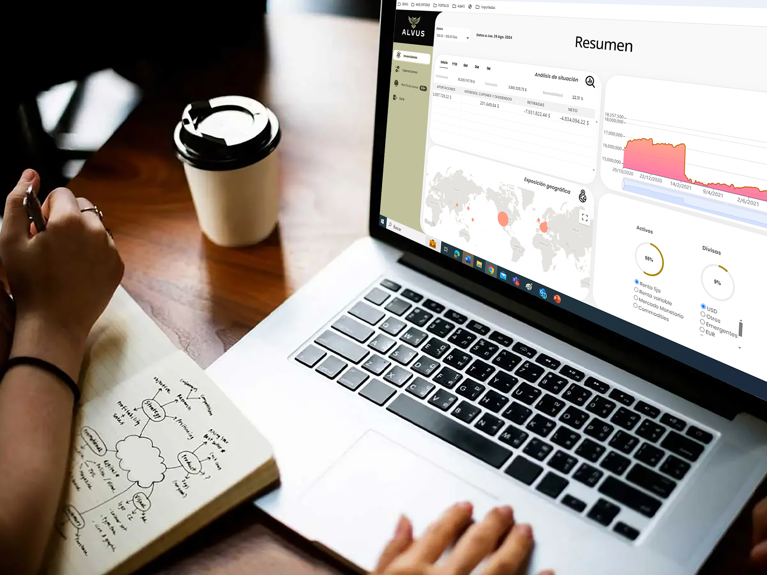 - Sus datos patrimoniales no necesitan estar aislados. Podrá conectar Alvus a su empresa con el fin de integrar la información. Por ejemplo, automatizando su contabilidad en su ERP o con su gestor, cuadros de mando, etc.